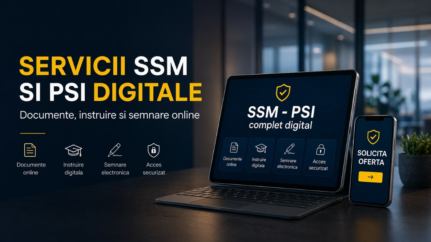 Pentru echipe mari si sedii multiple, SSM pentru corporatii include si partea de situatii de urgenta, planuri pe etaje, proceduri interne, plus reguli pentru telemunca acolo unde este cazul. In ssm digital, instruirea si semnarile se fac rapid, iar evidenta ramane usor de verificat.